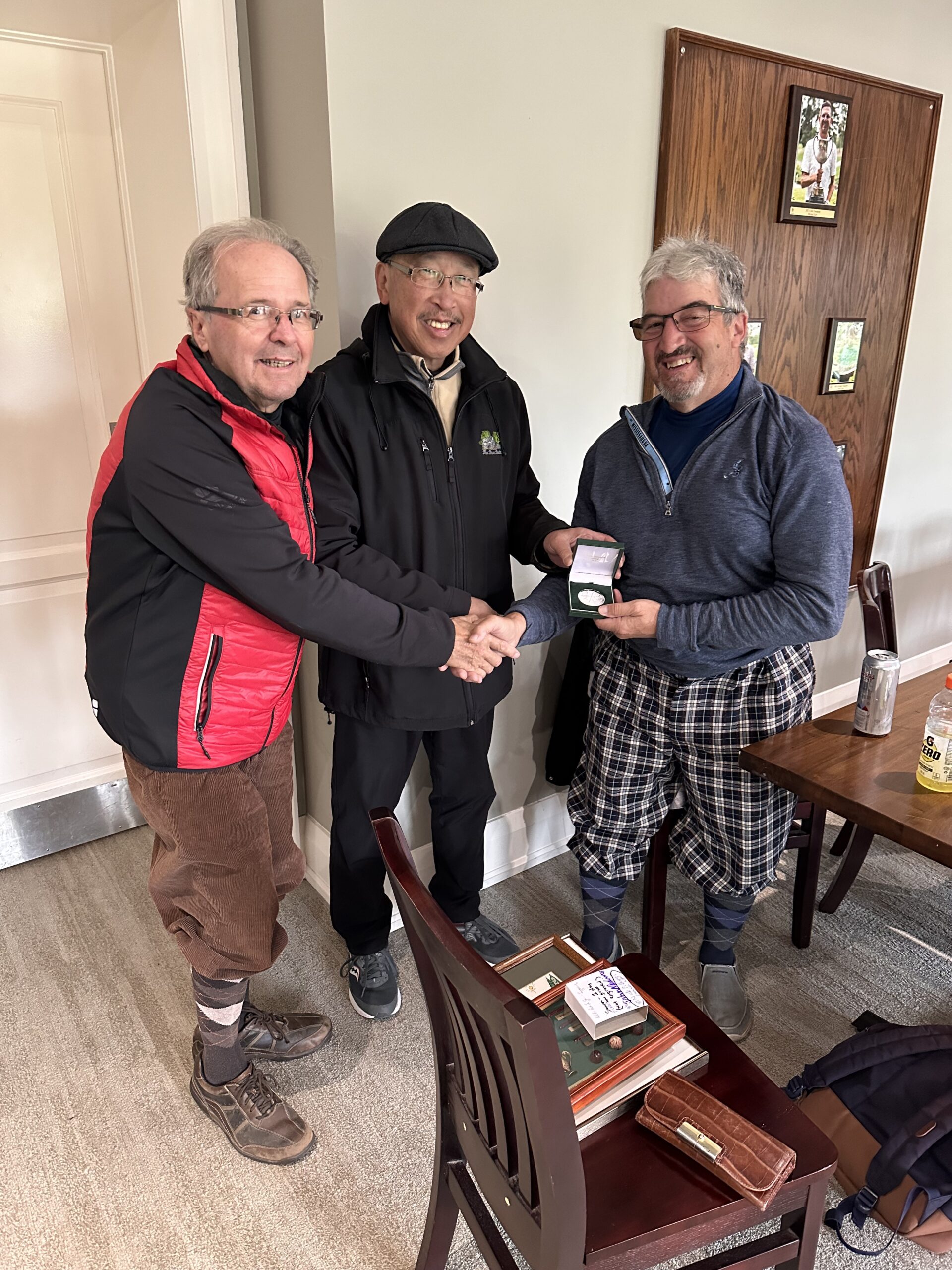 Players also received nice GHSC Championship bag tags and custom GHSC poker chip ball markers, designed by Allan Lew and Vaughn Perusse. Thanks to Bob West for securing the wonderful silver and bronze medals from Scotland, presented to both gross and net prize winners.